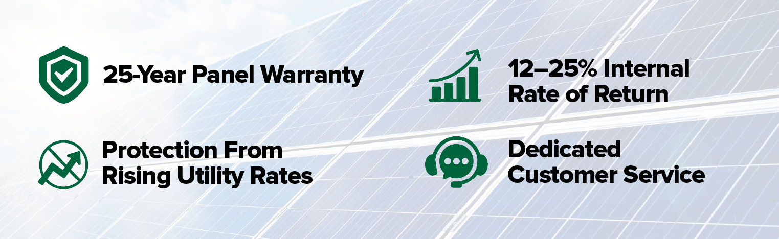 Federal and state incentives, such as tax credits, rebates, and accelerated depreciation, make investing in commercial solar more affordable. Your solar system could pay for itself in just a few years.